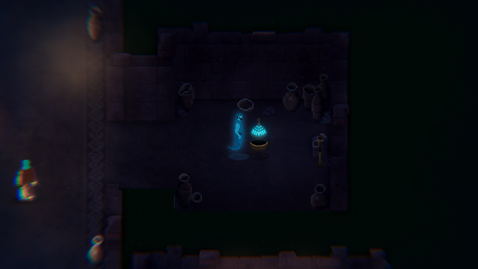 Qarin is a 2.5D top-down pixel art puzzle game , where you control 2 different characters in order to solve the puzzles